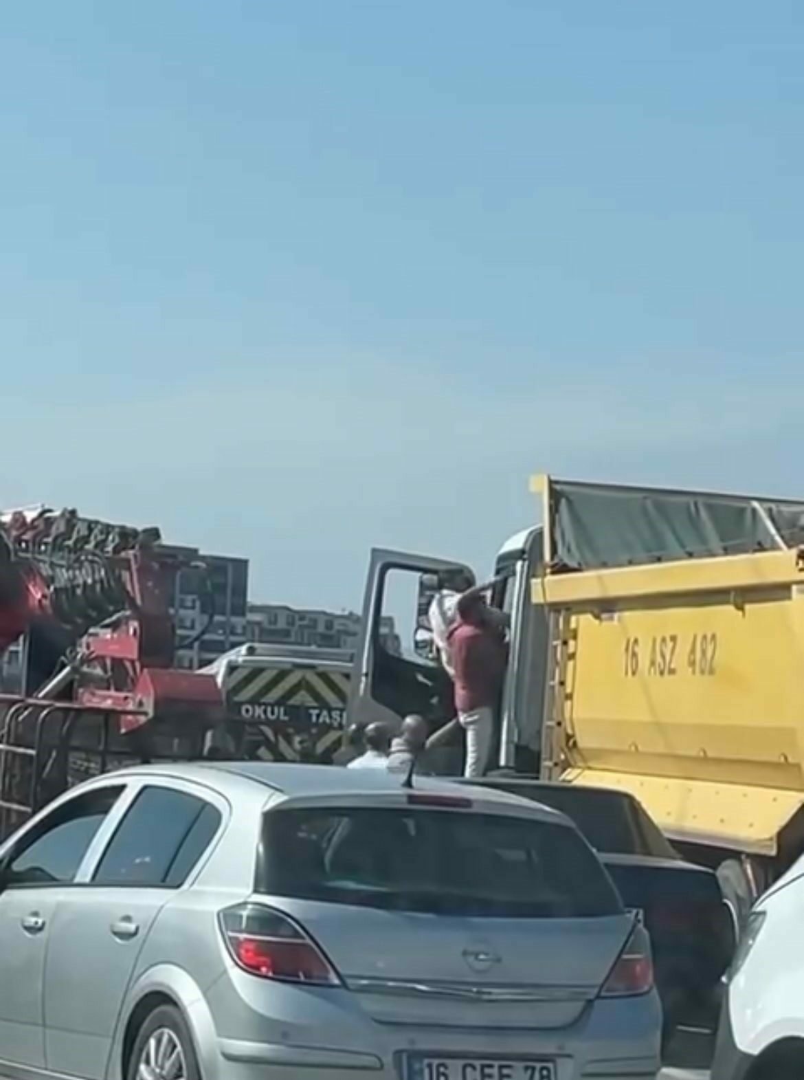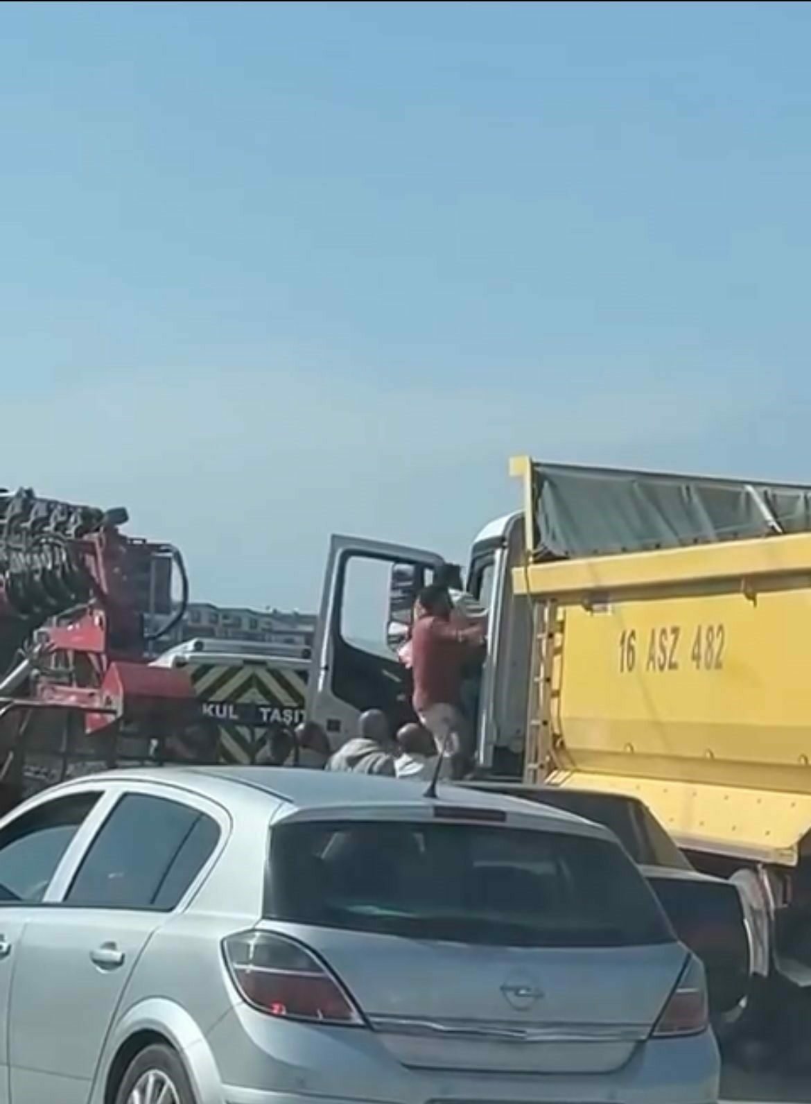 Olay, Yıldırım ilçesinin Millet Mahallesi’nde akşam trafiğinin yoğun olduğu bir saatte gerçekleşti. İddiaya göre, bir otomobilin sürücüsü ile anayolda ilerleyen kamyon şoförü yol verme noktasında tartışmaya başladı. Öfkelenen otomobil sürücüsü, yanındaki arkadaşıyla birlikte araçtan inerek kamyonun kupa kısmına tırmanarak şoförü darp etmeye başladı. Olayı gören bazı vatandaşlar, tarafları ayırmaya çalışırken, bazıları da duruma klaksonlarıyla tepki gösterdi. Kavga anı, amatör bir kamera tarafından kaydedildi.