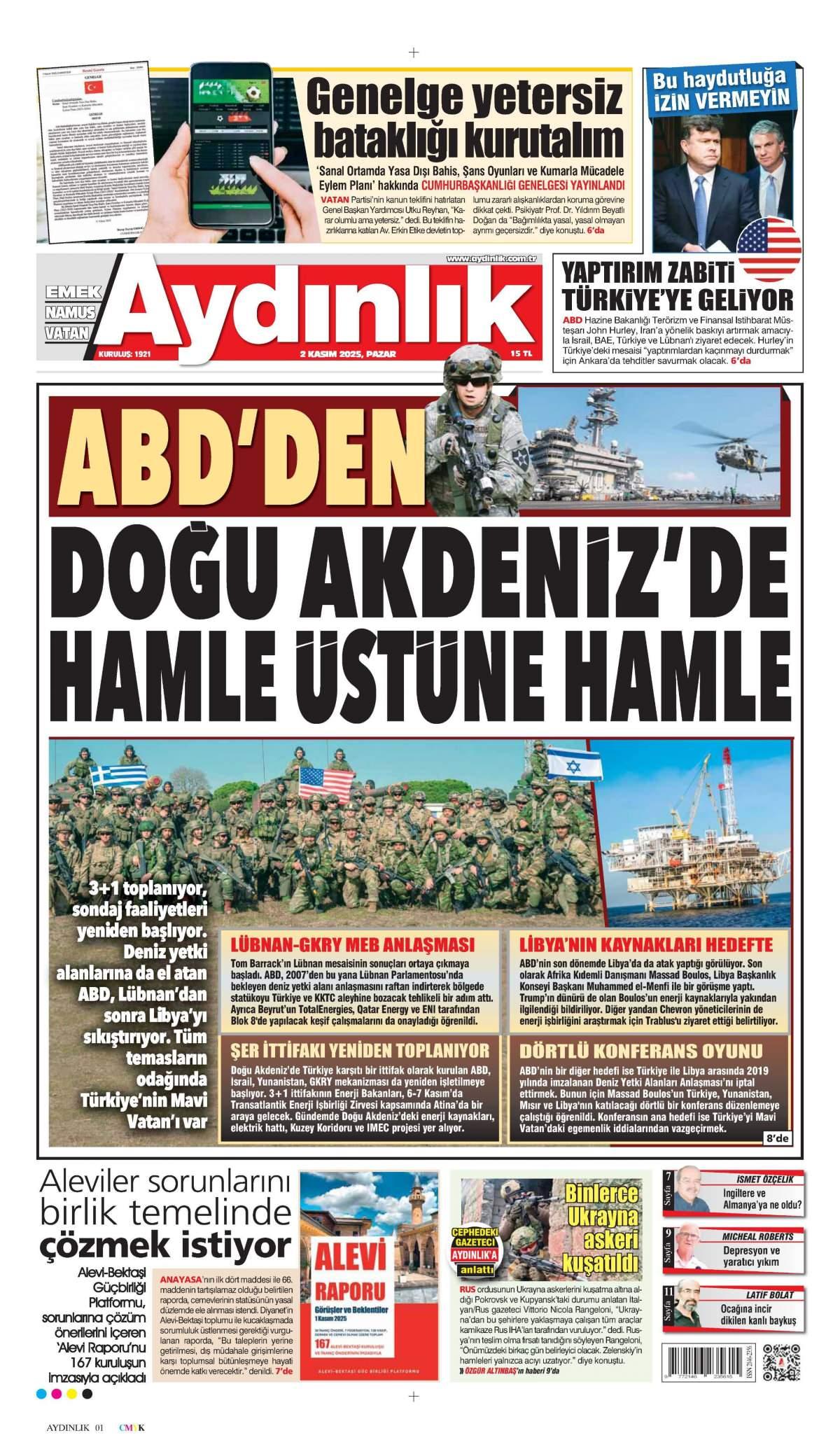 Aydınlık Gazetesi 2 Kasım 2025 Günü Gazete Manşetleri