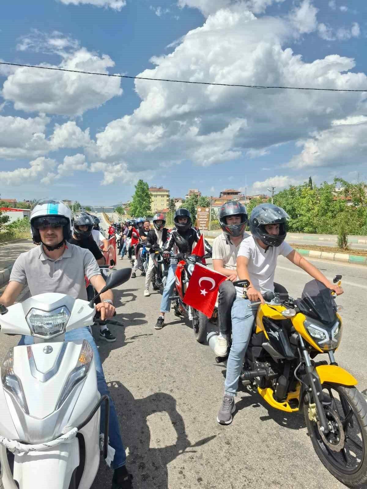 ‘Gençlik Haftası’ etkinlikleri kapsamında, Ahmet Necati Yılmaz Mesleki ve Teknik Anadolu Lisesi tarafından ilçe genelinde motosiklet sürücü belgeli katılımcılar için bir ‘Motosiklet Turu’ düzenlendi. Bu etkinlikte, lise önünde bir araya gelen sürücüler, trafik polislerinin gözetiminde ilçe merkezinden geçerek Bursa karayolundaki Akcabük Mahallesi’ne kadar ilerlediler.