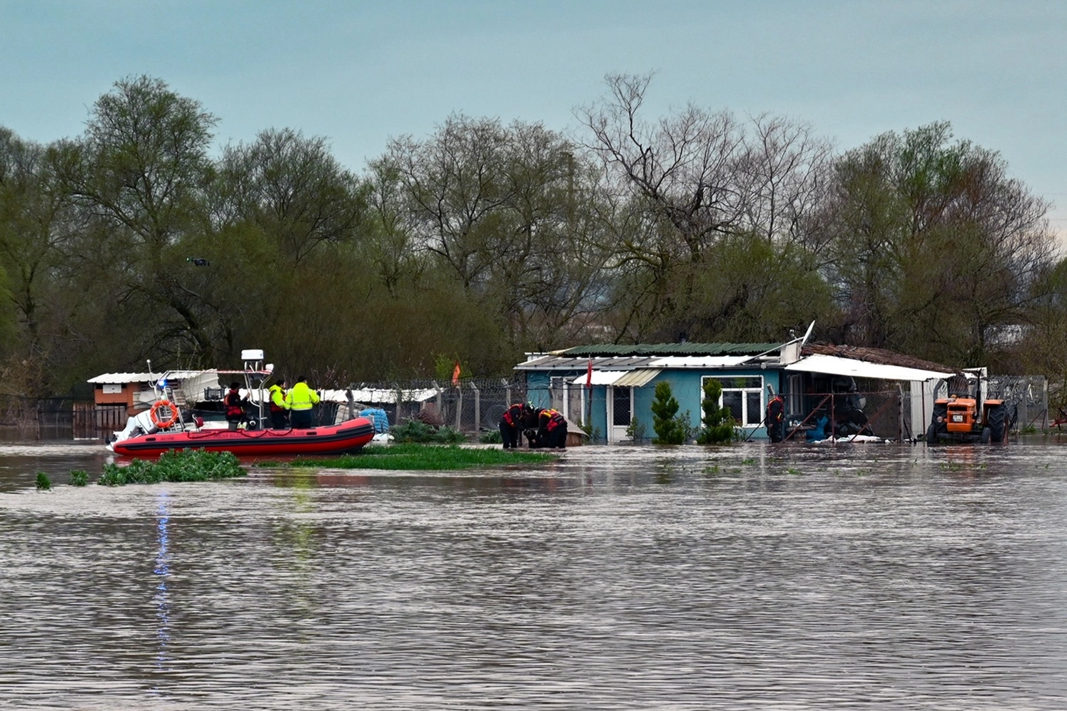 BURSA (İGFA) - Bursa'da önceki geceden beri etkili olan yağışların ardından Karacabey İlçesi Gönü Mahallesi'nde Metin Korkut’a ait bağ evi büyük ölçüde sular altında kalırken bahçede bulunan iki köpeğin kurtarılması için Bursa Büyükşehir Belediyesi ekipleri hızla harekete geçti. İhbar üzerine bölgeye ulaşan Bursa Büyükşehir Belediyesi Afet İşleri Daire Başkanlığı’na bağlı Bursa Acil Müdahale ekipleri, botla su basan alana girerek çalışma başlattı. Koordineli müdahale sonucunda “Cesur” ve “Zeytin” güvenli şekilde çıkarılarak sahibine teslim edildi.