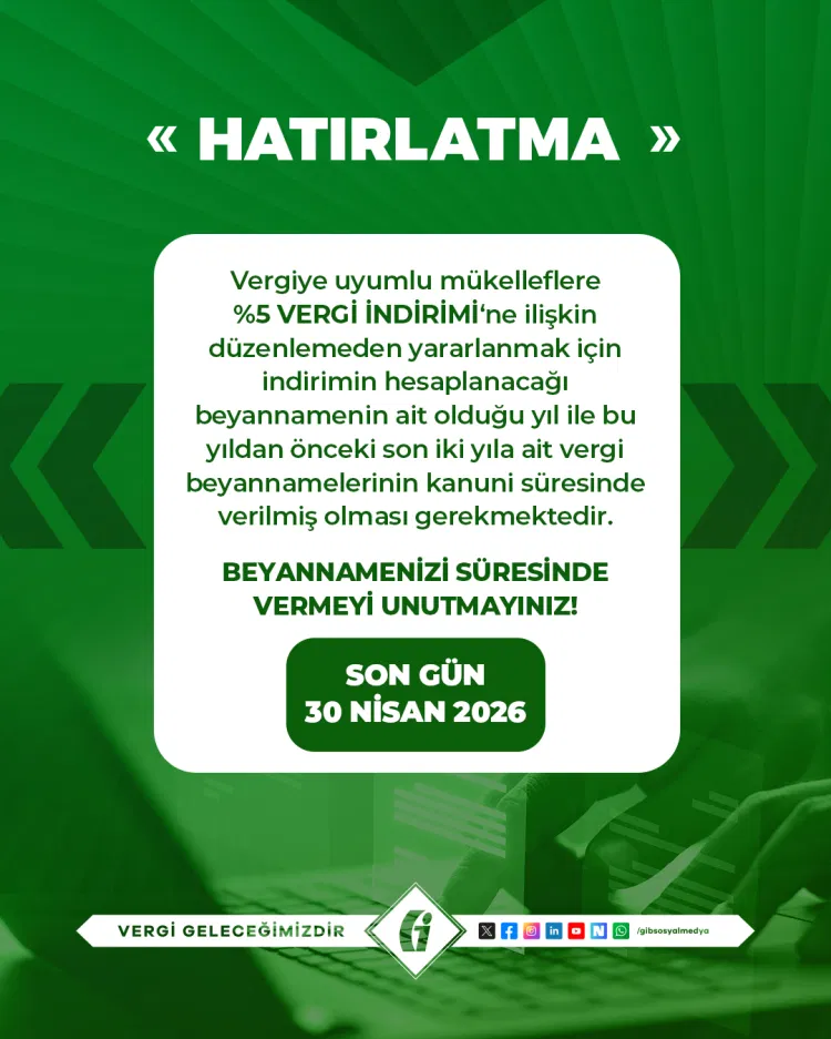 Öte yandan, belirli şartları sağlayan kurumlar vergisi mükelleflerine yüzde 5 vergi indirimi uygulanıyor.
